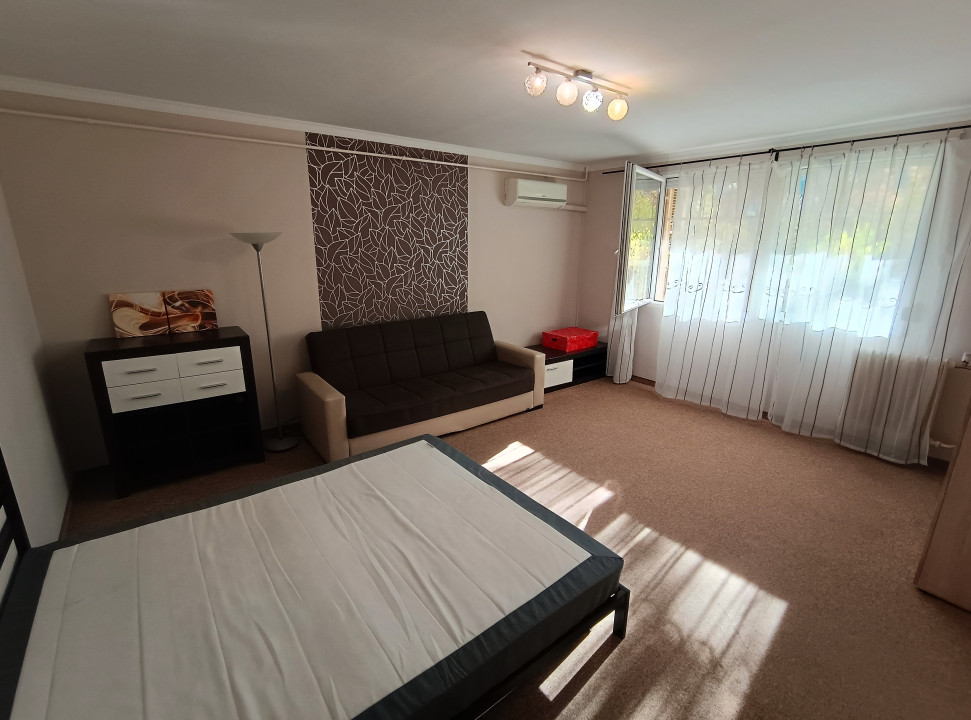 - Kétszárnyas ajtókon juthatunk ki a kertbe.