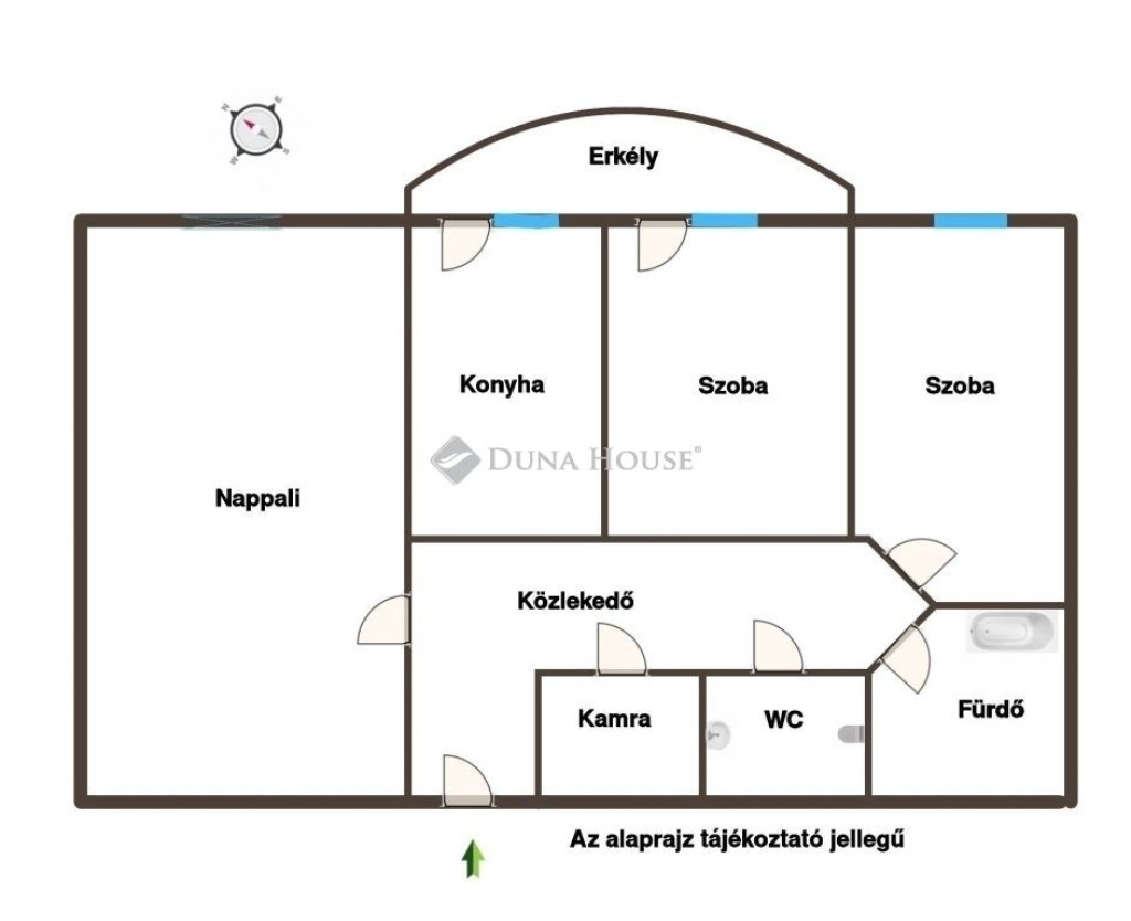 - 6 nm-es, belső kertre néző erkély
