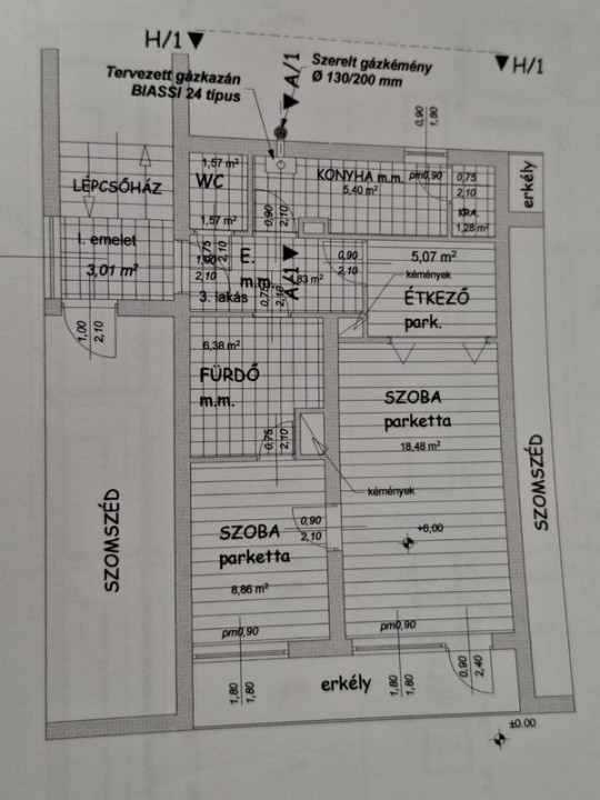 • Szobák: parketta burkolat