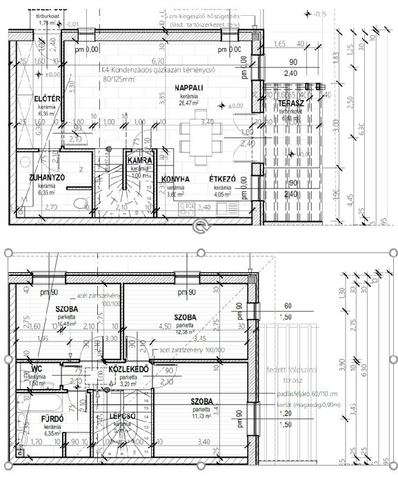 A ház tökéletes elosztású, az alsó szinten található az amerikai konyhás nappali, tároló, előszoba, illetve tusolós fürdőszoba.