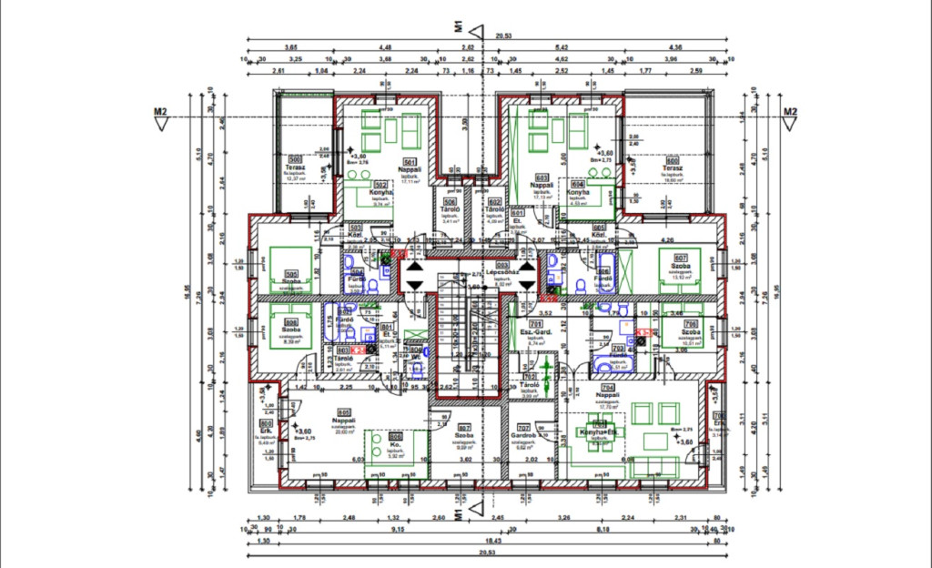 Az emeleten 3 db nappali + 1 hálószobás lakás és 1db nappali + 2 hálószobás lakás található! Mind a négy emeleti lakáshoz tartozik tároló és 2db külső autóbeálló. Ezek szintén a vételár részét képezik.