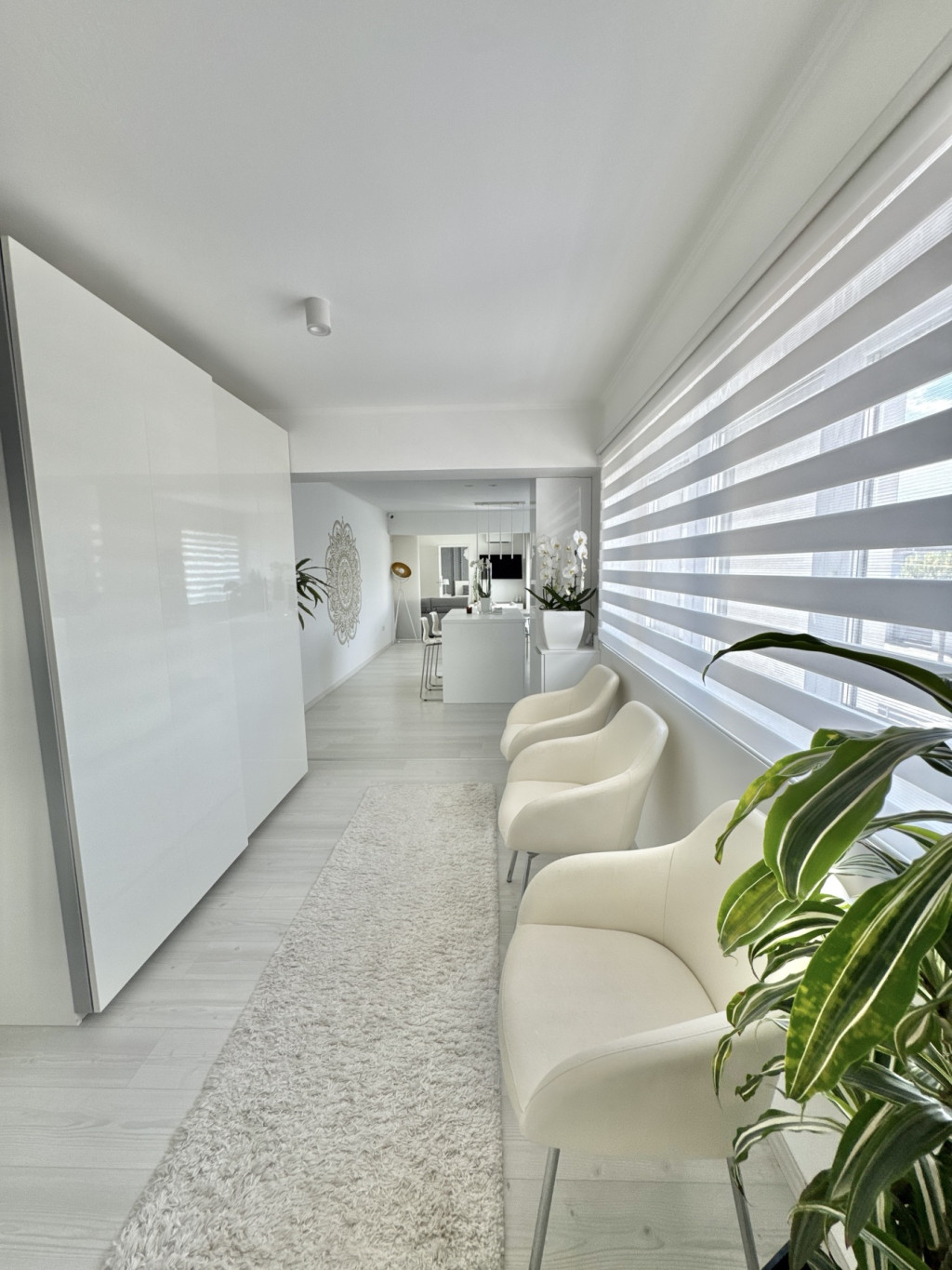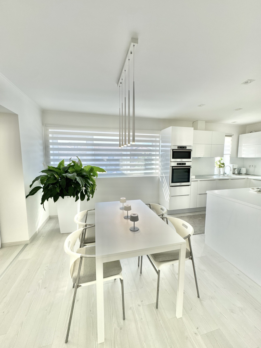 A nappali ragyogóan világos. Nagyon alacsony rezsi! Az elegáns konyha egyedileg tervezett, gépesített. Okos lámpák.