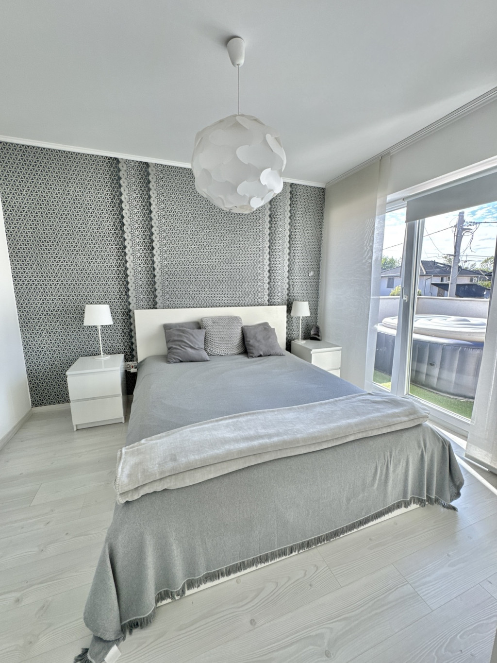 A szuper lakás a tavak mellett fekszik, így a gyönyörű modern ház terasza panorámás.