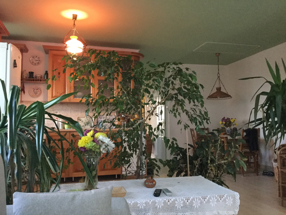 A lakás egyedileg van kialakítva, belépve tágas konyha, ebédlő és nappali fogad (34 m2), amiből ki lehet menni a teraszra. A terasz egyik oldalról fákkal védett, amit mi ültettünk. A konyhában egyedi készítésű, fából készült, intarziás lapú konyhabútor. Különálló wc, a fürdőben nagy zuhanyt alakítottunk ki 2018-ban, elötte kád volt. A háló nagyon nagy (20 m2), világos. Egy félszoba van még, ami kicsivel több, mint 10 m2.
