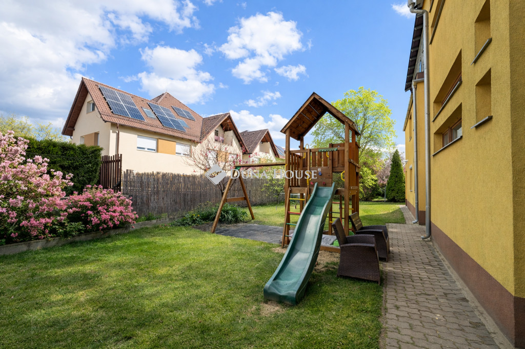 Dunakeszi egyik legkeresettebb részén, az Alagliget Lakópark csendes zsákutcájában kínálunk megvételre egy 4 szobás, gyönyörűen napfényes első emeleti lakást, mindössze 9 lakásos, saját kerttel és játszótérrel rendelkező társasházban.