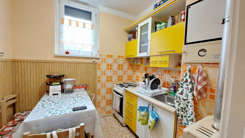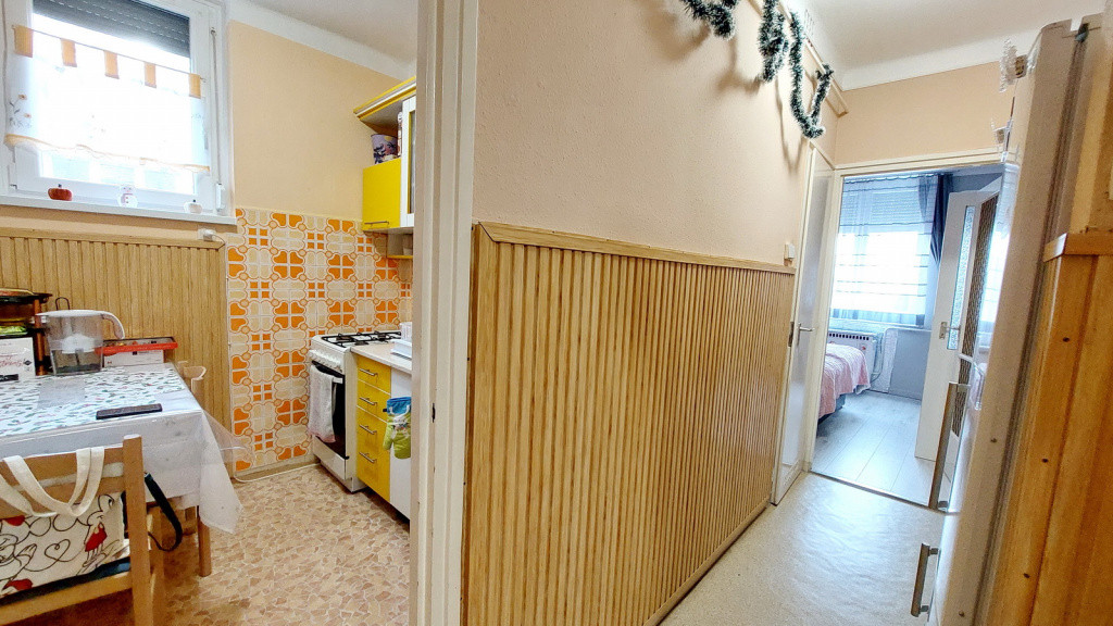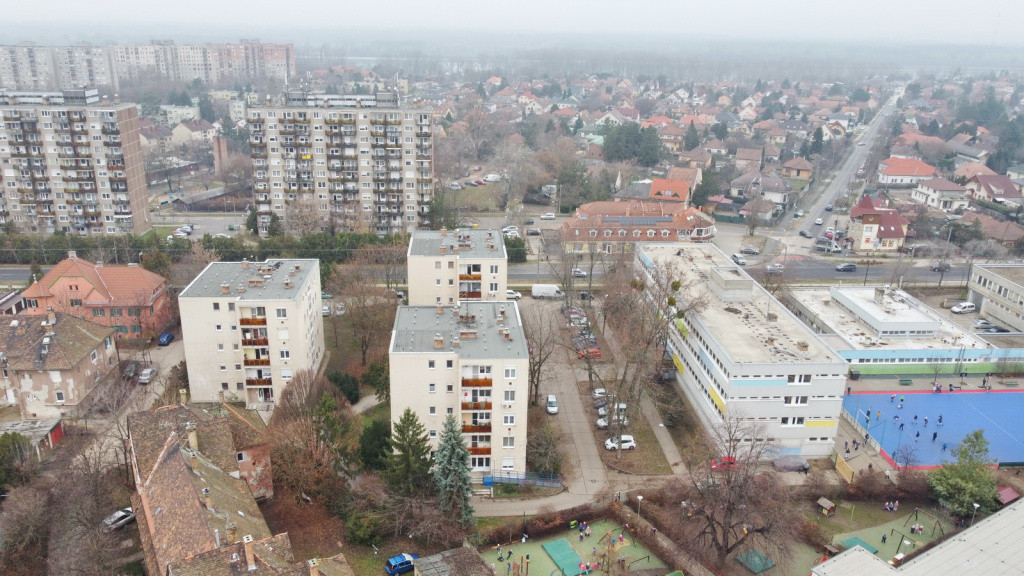 For sale: a 2-room apartment with balcony on the 2nd floor, burdened with a lifetime usufruct right, located on Kandó Kálmán Promenade in the Gyártelep area of Dunakeszi.