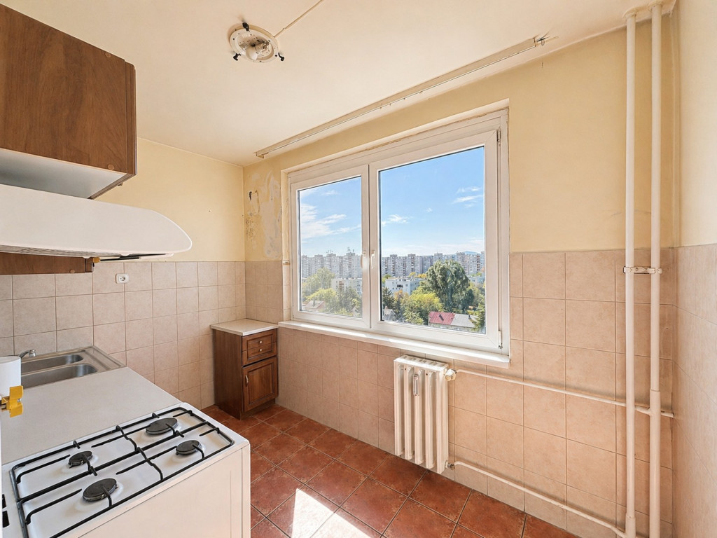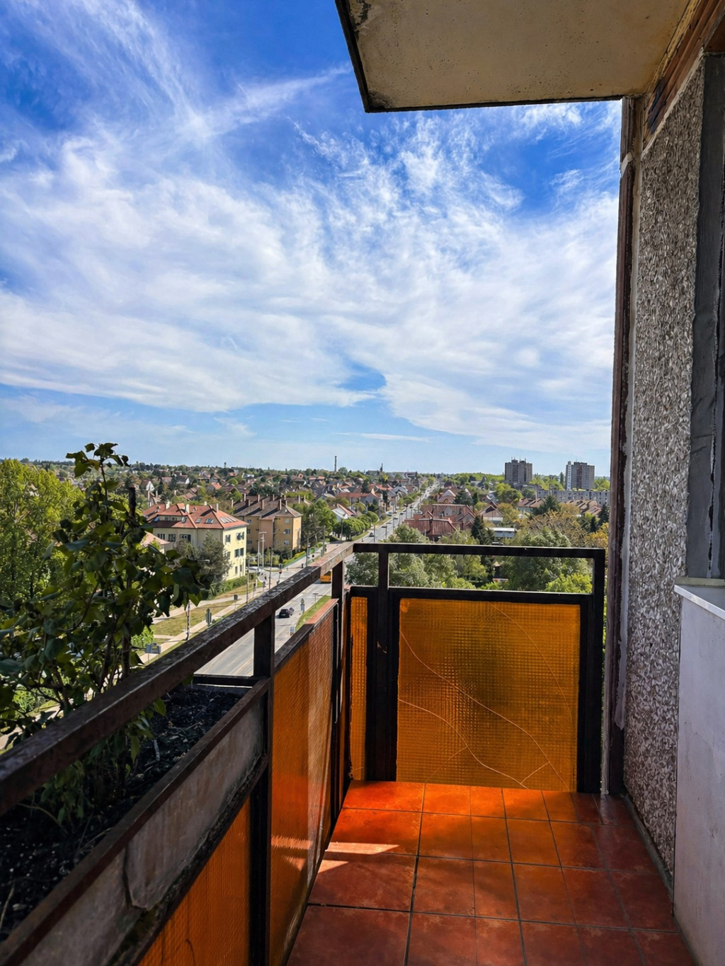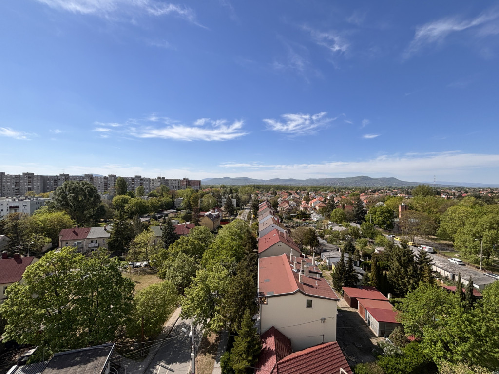 Az ingatlan egy 8 emeletes épületben található, panorámás kilátással, valamint kelet–nyugati fekvésének köszönhetően egész nap világos, napfényes.