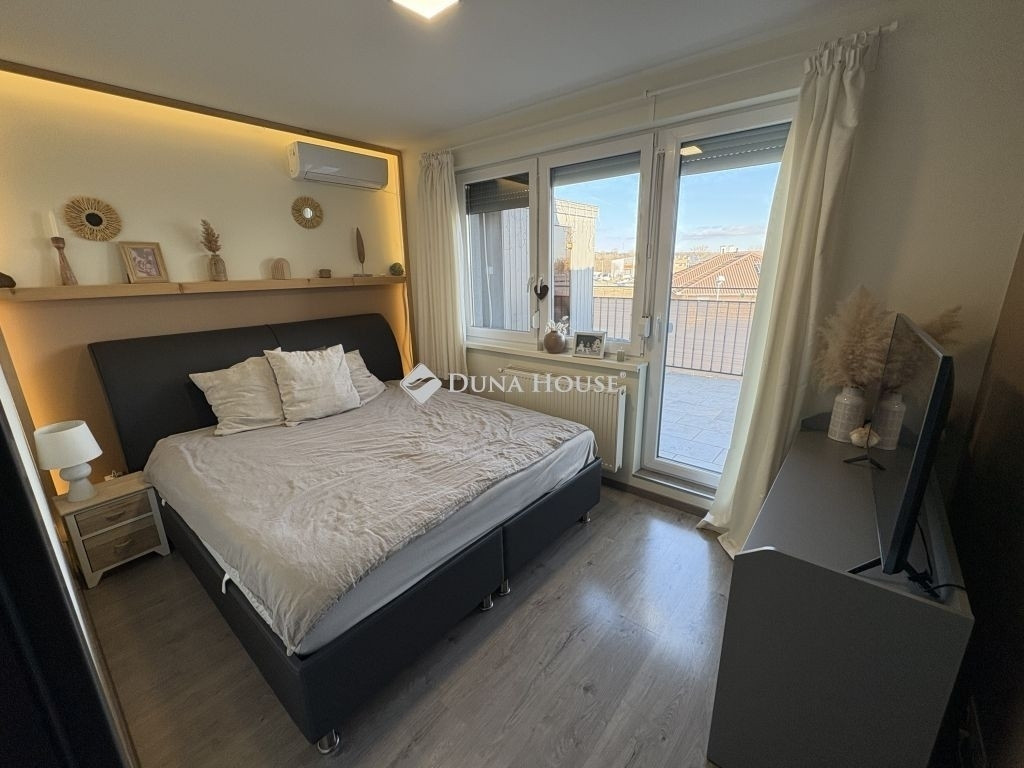 Az ingatlan központi tere az amerikai konyhás nappali, amelyből közvetlen kijárás nyílik a teraszra. A lakás további helyiségei között található két hálószoba amelyből az egyik szintén teraszkapcsolatos a másikból pedig egy galéria érhető el, amely kiváló tárolási lehetőséget biztosít, de akár dolgozószobának vagy plusz hálórésznek is ideális, hiszen klíma gondoskodik a fűtésről és a hűtésről.