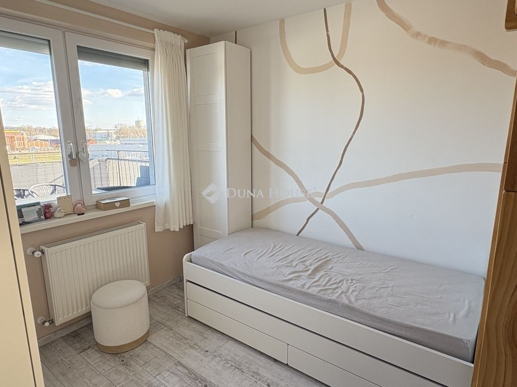Az ingatlan a közkedvelt Malom-árok lakópark területén található, mindössze 10 perc sétára a Duna parttól. A nagy Tesco áruház 2 perc gyalogosan elérhető, ahol számos üzlet biztosítja a mindennapi kényelmet. A buszmegálló 5 perc sétára, a vasútállomás 15 perc távolságra található, ahonnan a vonat 25 perc alatt a Nyugati pályaudvarra érkezik. Iskola és óvoda szintén könnyen, gyalogosan megközelíthető, így a lakás elhelyezkedése ideális családok számára.