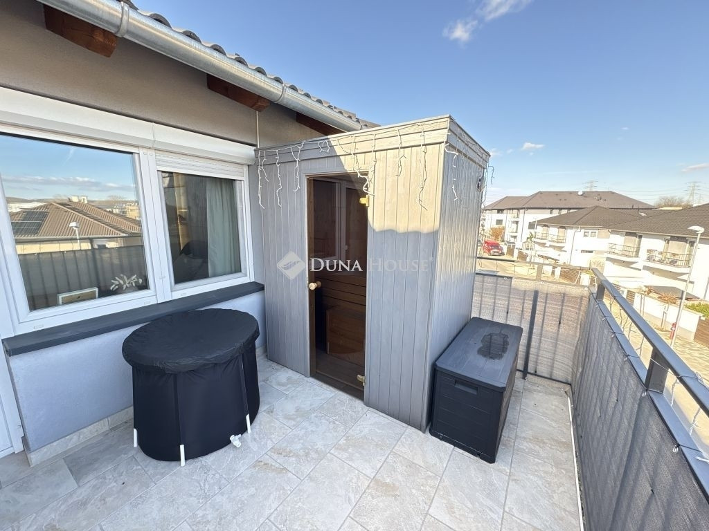 A 30 nm-es terasz a lakás egyik legnagyobb értéke, ahol egy kétszemélyes finn szauna és kényelmes kültéri lounge bútorok kaptak helyet, így a mindennapokban valódi privát wellness élményt nyújt.