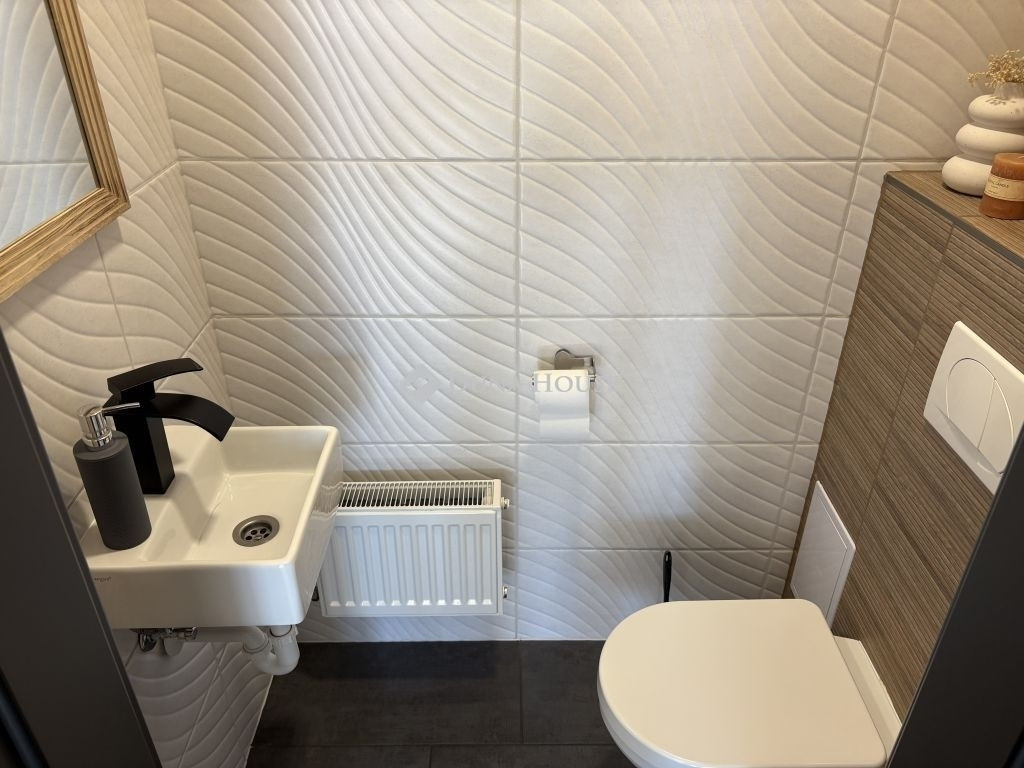 A fürdőszoba kádas kialakítású, WC-vel, emellett egy különálló WC is rendelkezésre áll.