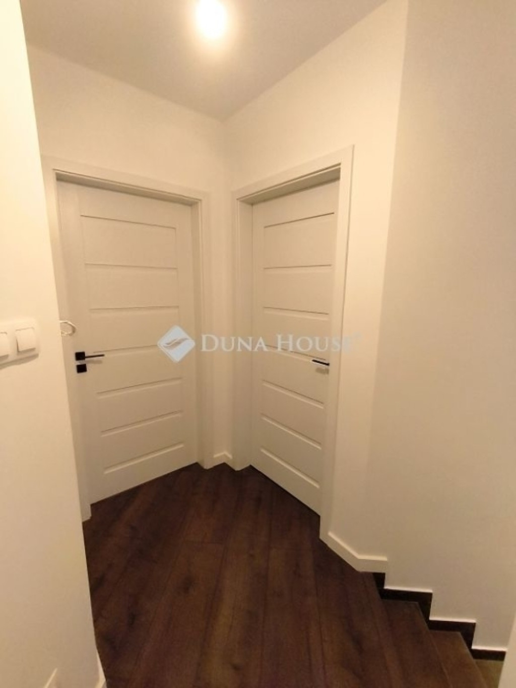 Kétszintes, modern lakás garázzsal - Dunakeszi TóvárosbanEladásra kínálunk, egy 2020-ban épült, belső kétszintes, 97 m²-es, újszerű állapotú lakást Dunakeszi Tóvárosban. Az ingatlan, Porotherm téglából épült, 10 cm-es hőszigeteléssel. Az alsó szinten 6 m²-es erkély található, mely az amerikai konyhás nappaliból közelíthető meg. A lakáshoz 33 m²-es saját garázs is tartozik, két autó beállására alkalmas, és a vételár részét képezi. A társasház mindössze 4 lakásos, egy lépcsőházban két lakással, így biztosított a nyugodt, családias légkör. A vételár tartalmaz egy 6 m²-es, zárható tárolót is, melyet a szomszéddal közösen lehet használni.Elosztás:- amerikai konyhás nappali, erkélykapcsolattal- három külön nyíló hálószoba- kamra- mindkét szinten fürdőszoba és WCFőbb jellemzők:- 66 m² könnyen karbantartható előkert- minőségi burkolatok és hangszigetelt beltéri ajtók- teljesen felszerelt IKEA Bodbyn konyha (AEG XL mosogatógép, beépített hűtő, mikró, sütő, indukciós főzőlap) a vételár részét képezi- fűtési rendszerek: gázkazán, padlófűtés, hűtő-fűtő klíma- Fujitsu hűtő-fűtő klíma, 10 év garanciával- riasztó előkészítve- redőnyök és szúnyoghálók az ablakokon- egyedi mérőórák (gáz, víz, villany 3×20A napelem további bővítéssel telepíthető)- akár 4+1 autó parkolása biztosított- alacsony rezsi- friss tisztasági festés a közelmúltban- rövid határidővel költözhetőKörnyék:A mindennapi élethez szükséges infrastruktúra a közelben: játszótér, tó, SPAR, buszmegállók, óvodák és az iskola. A vasútállomás kb. 15 percre található, ahonnan 20 perc alatt a Nyugati pályaudvaron vagyunk.Ez az ingatlan ideális választás azoknak, akik modern, alacsony fenntartású, kényelmes otthont keresnek barátságos környezetben, Dunakeszi egyik legszebb és legkeresettebb részén. Ide csak költözni kell, nem igényel felújítást.Amennyiben szeretné megtekinteni az ingatlant, kérem, keressen bizalommal, akár hétvégén is.