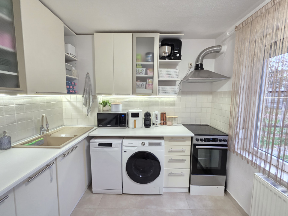 A felújítás során nem csak esztétikai, hanem műszaki szempontból is mindent elvégeztek: a teljes villamos (32 A) és vízvezeték-hálózat új, a fürdőszoba és mellékhelyiség szaniterei is teljesen újak. A melegvíz ellátását villanybojler adja, a fűtésről pedig házközponti rendszer, villanykazán gondoskodik. A nyári melegben egy hűtő-fűtő klíma teszi kellemessé a nappaliban töltött időt. A nyílászárók korszerű műanyag ablakok szúnyoghálóval és redőnnyel felszerelve.