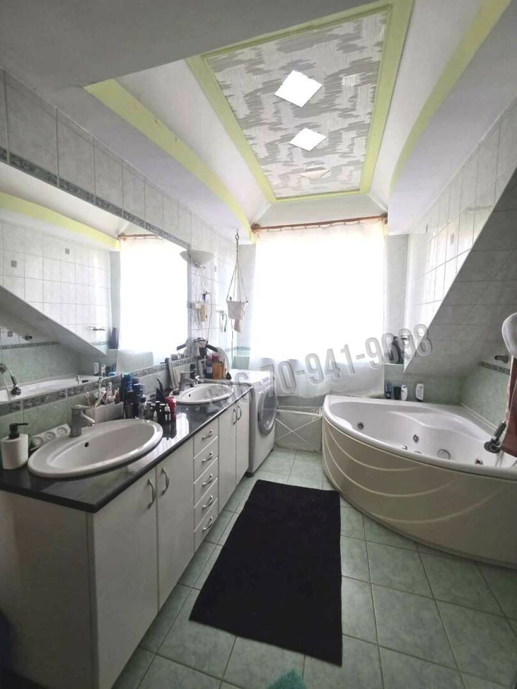 Fürdőszobában masszázskád, zuhanykabin, dupla mosdó