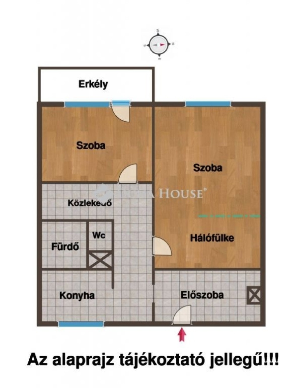 A lakás két szobás, a tágas nagyszobából egy praktikus hálófülke került leválasztásra, amely kényelmes plusz alvóhelyet vagy akár dolgozósarkot is biztosíthat. A kisebb szobához kapcsolódik az erkély.