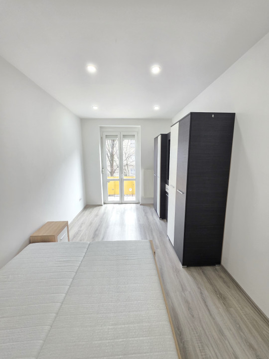 Az erkélyes szobák a folyosó két végéről nyílnak, középen a konyha és fürdőszoba található. A nyílászárók korszerű műanyag ablakok és biztonsági bejárati ajtó.