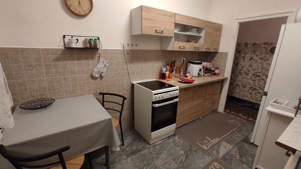 A konyhája tágas és kamrája is van.