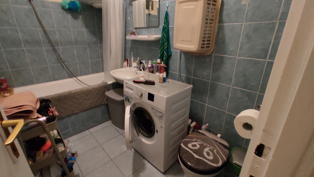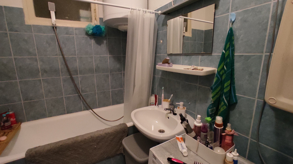 A fürdőszoba és a WC egy helyiségben van.