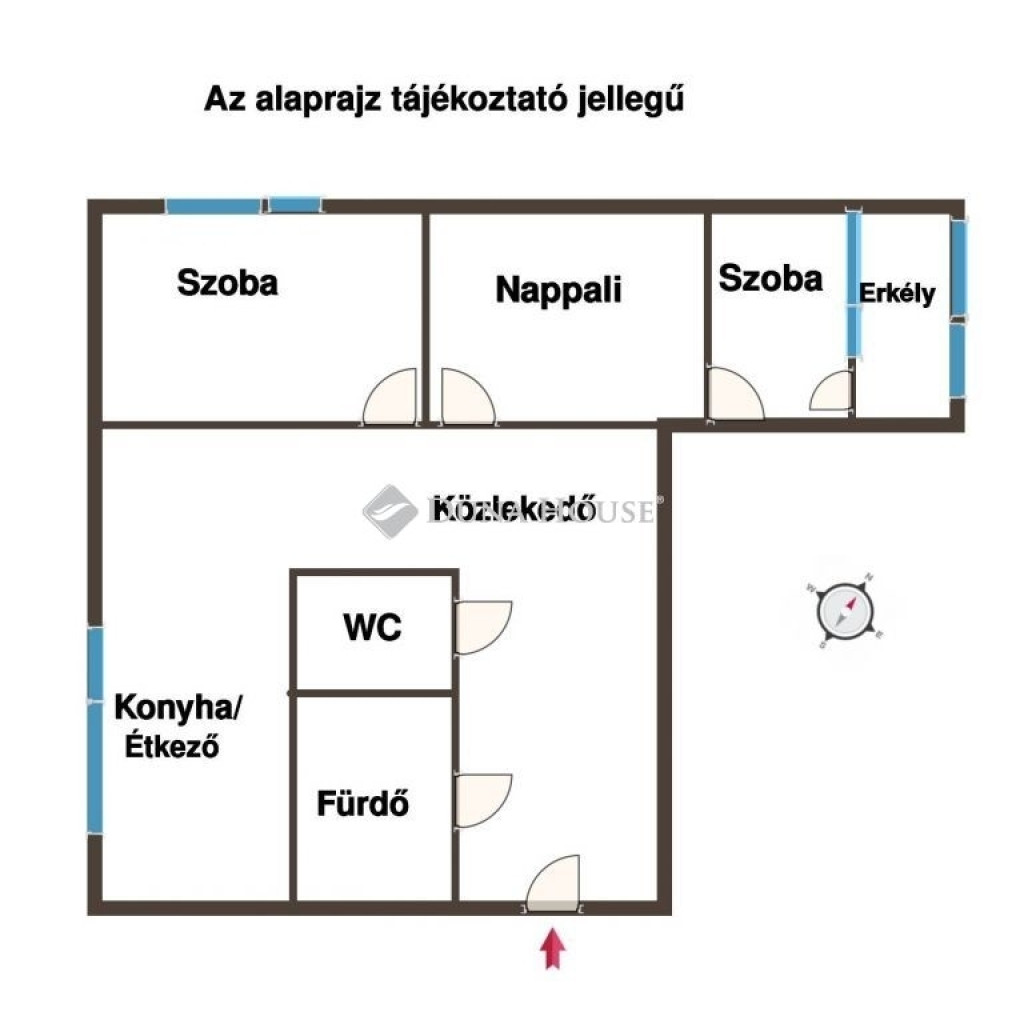 A jó elosztásnak köszönhetően 2 szoba, nappali és konyha étkezővel lett kialakítva.