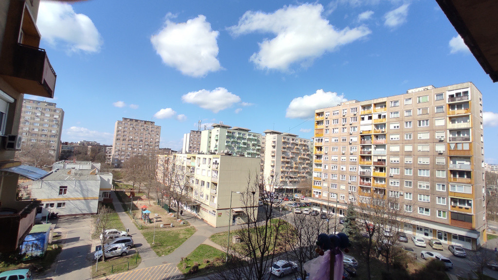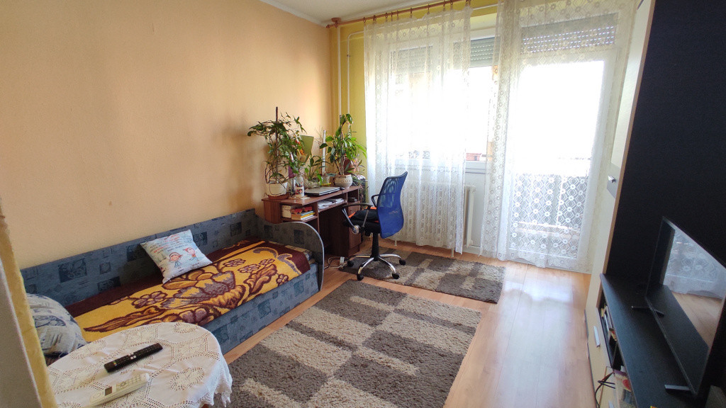 A kisebbik szobából nyílik az erkély. Nyugati tájolásúak a szobák. (laminált parkettásak)