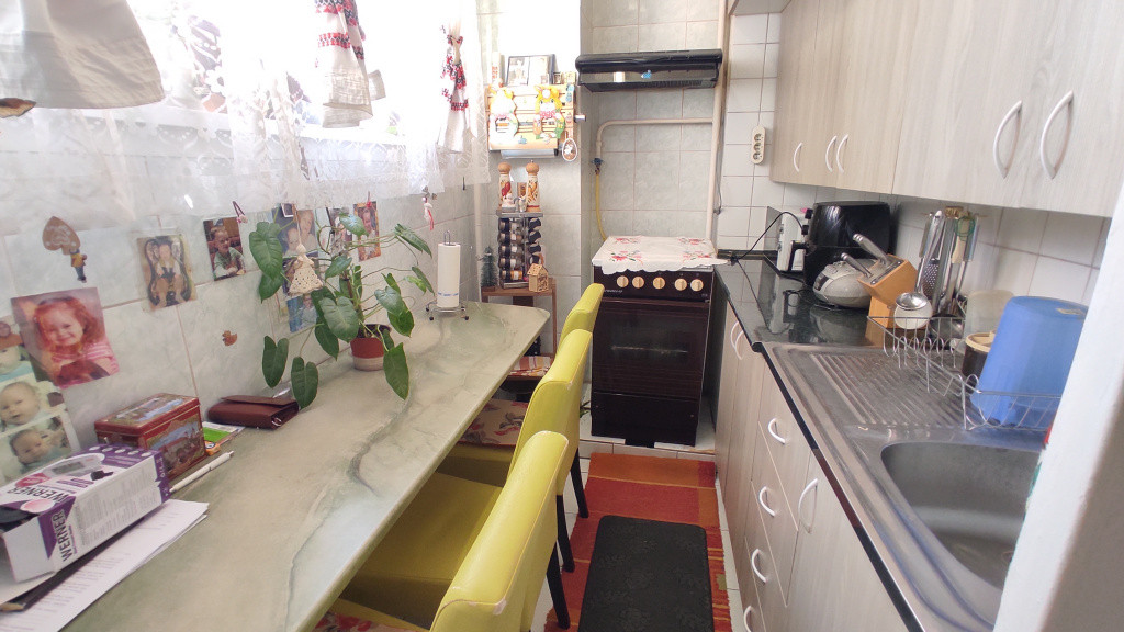Zuhanykabin került a helységbe (járólapos). A WC külön helységben lett kialakítva. A konyha és a kisebbik szoba ablakai műanyag nyílászáróra cserélve. A konyha ablaka utcafronti így a helyiség természetes fényű, világos.