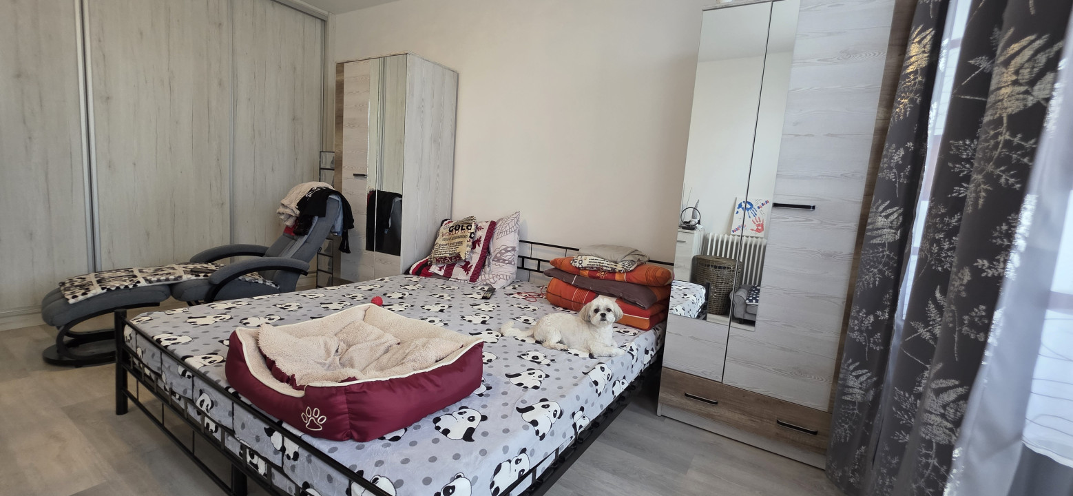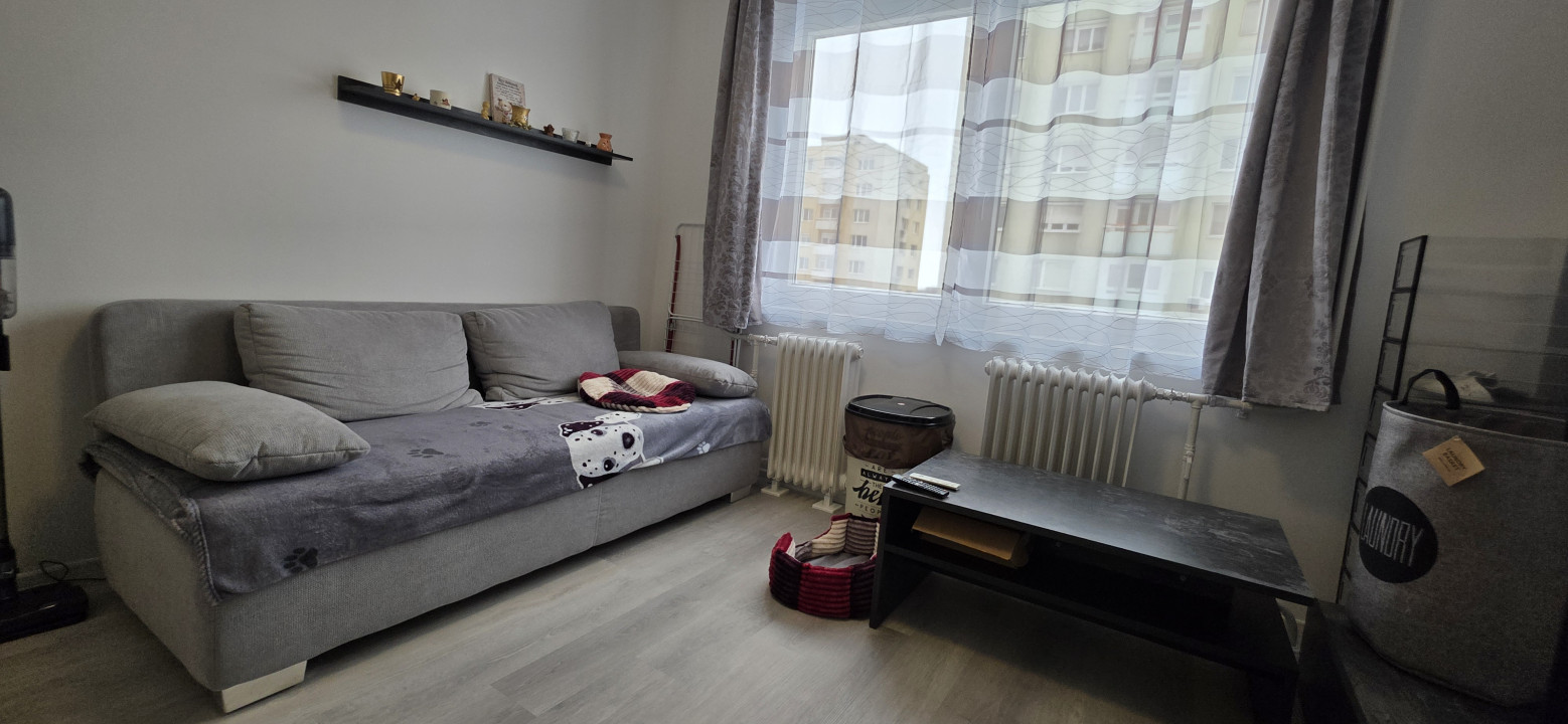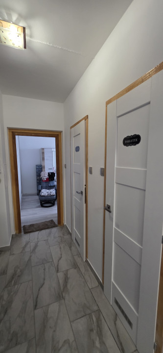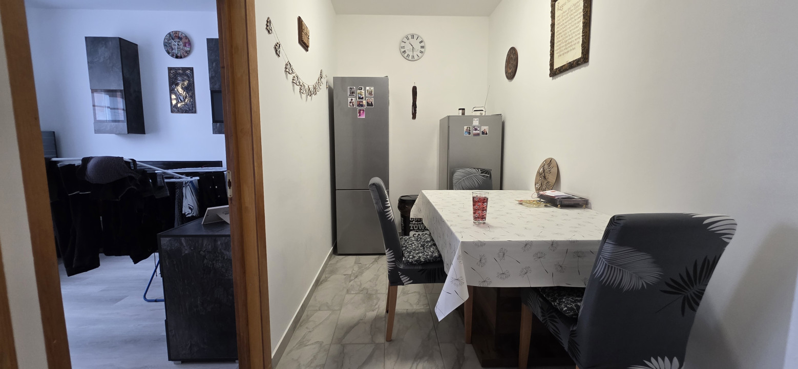 Az egyik szobából külön étkezőrész került leválasztásra, így a lakás elrendezése még praktikusabb. A szobák laminált padlóval, a többi helyiség járólappal burkolt.