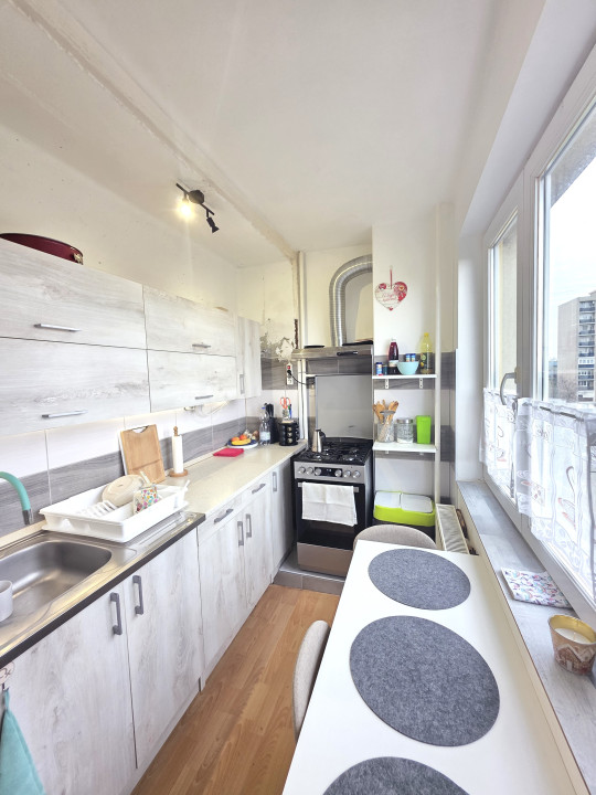 A fürdő és a WC teljes felújítása 2021-ben történt meg, és a konyha is részlegesen korszerűsítve lett. A folyosón, a konyhában, valamint a vizesblokkban új villanyvezetékek vannak. A kis szoba új laminált padlót kapott, és frissen van festve. A nyílászárók korszerű műanyag, és fa ablakok. Az erkély beépítésre került. A lakás elrendezése a megszokott kétszobás panel, folyosoról nyíló helyiségek, világos terek.