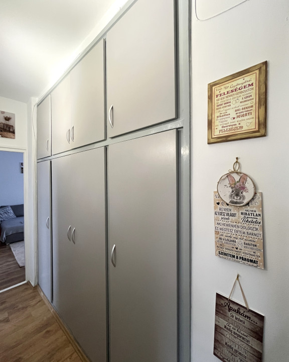 A lakás fal-, és padlóburkolata ízléses és kiváló állapotban van. A nappaliban található klíma bár nem új, de évente karbantartott, jól működik. A konyhabútor és a folyosó beépített bútorai újszerűek, a vételár részét képezik.