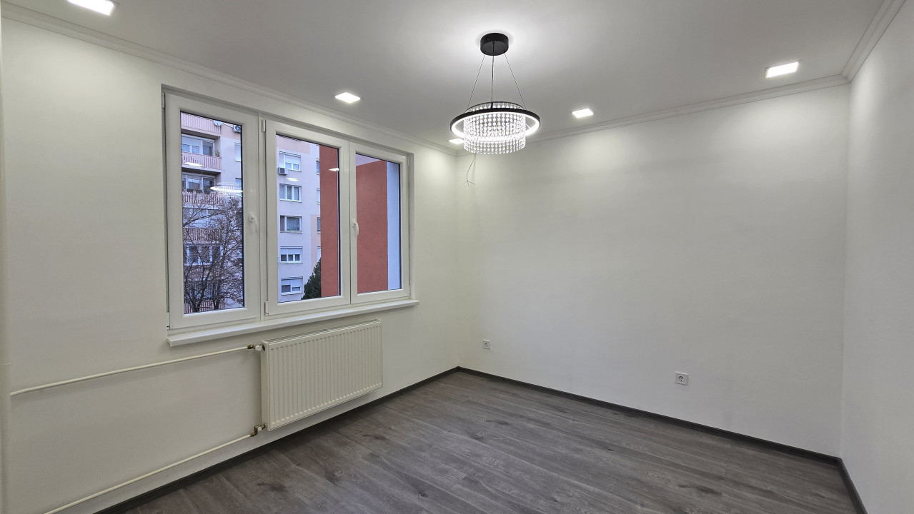 Dunaújváros közkedvelt városrészében, a Római körúton, 1.emeleti, 2 szoba-étkezős, teljesen felújított lakás eladó! A lakás felújítási munkálatai 2025 második félévében valósultak meg. Melyek során felújították a teljes elekromos hálózatot, fűtés és vízvezeték rendszert. A lakás új műanyag ablakokat, új beltéri ajtókat és fém bejárati ajtót kapott. A lakásban gipszkarton álmennyezet került kiépítésre. A fürdőszobát zuhanykabinosra alakították át. A konyhába egyedi gyártású új konyhabútor lett beépítve, gázos főzőlappal és elektromos sütővel. A lakás hűtéséről 3,5 KW-os klíma gondoskodik. Minden beépített gép új és garanciális. A lakás egy négyemeletes társasház első emeltén helyezkedik el. Az épület szigetelt, panelprogramos. A lépcsőház karbantartott, hetente takarítják, jó a lakóközösség. A lakáshoz saját zárható pice is tartozik. Az ingatlan tehermentes, azonnal birtokba vehető, 3%-os Otthon Start hitel igényelhető rá.