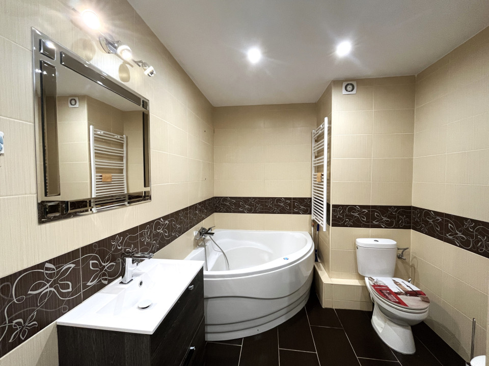 A Járási Hivatal mellett, a belvárostól karnyújtásnyira, boltok, iskola, óvoda közelében található a tízemeletes szigetelt panelépület 9.emeleti lakása. 2017-ben műszakilag és esztétikailag is felújították, a fürdőt átalakították. A fiatalos hangulatú otthonban történt felújítás során mindent kicseréltek, rézvezetékes villamoshálózat, új vízvezetékek, korszerű burkolatok kerültek a falakra, padlóra. Az egész lakásban álmennyezetbe épített világítás van, hangulat világítással kiegészítve. Korszerű műanyag ablakok kerültek a régiek helyére és a gyönyörű panorámát adó erkély is új burkolatot kapott. Az 59 m2-es lakás ideális elosztású, szobái külön nyílnak. A nappali közel 7 méter hosszú, így akár osztható is. A fürdőt egybenyitották az előtte lévő kihasználatlan térrel, így kényelmesen elfér a sarokkád, a mosógép és a szárítógép. A nappali óriási beépített szekrénye kiváló pakolós, ez természetesen a vételár része.