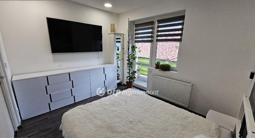 Heves megye, Almagyar városrész, 128/108 nm-es, jó állapotú, örökpanorámás (Eged-hegy), duplakomfortos, REZSIMENTES lakás eladó. A belső kétszintes ingatlan egy 2021-ben átadott, ytong falazatú (50 cm), háromlakásos sorház első emeletén helyezkedik el. A bejárat és az előszoba a földszinten található. Az emeleten amerikai konyhás nappalit, két hálószobát, fürdőszobát (sarokkáddal és zuhanyzóval), WC-t, háztartási helyiséget, közlekedőt és két erkélyt (16 nm, 7 nm) alakítottak ki, míg az idei évben beépített tetőtérben három szoba, fürdőszoba és közlekedő kapott helyet. A lakás saját használatú udvarral/kerttel rendelkezik, melyet a nappaliból nyíló erkélyről, lépcsőn közelíthetünk meg. Az ingatlan energiaellátását napelemek biztosítják, költségmentessé téve a fűtést és az összes elektromos készülék használatát is. A fűtésről elektromos kazán gondoskodik radiátorok segítségével, a komfortérzetet hűtő-fűtő klímák (3,5 kW) növelik. A meleg vízellátást villanybojler biztosítja. Háromrétegű műanyag ablakai redőnnyel szereltek. A lakáshoz, négy autó parkolását biztosító nyílt beállót alakítottak ki, melyből kettő fedett. Méretének, kialakításnak és elhelyezkedésének köszönhetően az ideális otthon lehetőségét kínálja többgyermekes család számára. Megegyezés szerint, a vételárba, kisebb lakás beszámítására van lehetőség. Amennyiben felkeltették érdeklődését a leírtak, egyeztessünk szóban egy megtekintés lehetőségéről! Ingatlanirodánk ügyvédi háttérrel, babaváró hitel, CSOK plusz, valamint kamatkedvezményes hitel ügyintézésével támogatja ügyfelei ingatlanvásárlását!
