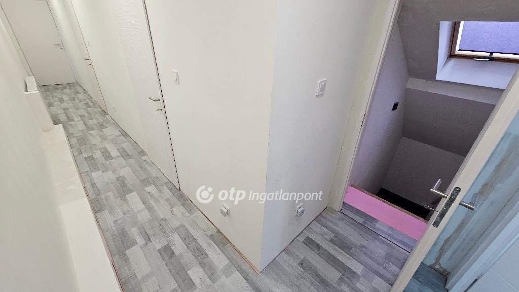 Heves megye, Almagyar városrész, 128/108 nm-es, jó állapotú, örökpanorámás (Eged-hegy), duplakomfortos, REZSIMENTES lakás eladó. A belső kétszintes ingatlan egy 2021-ben átadott, ytong falazatú (50 cm), háromlakásos sorház első emeletén helyezkedik el. A bejárat és az előszoba a földszinten található. Az emeleten amerikai konyhás nappalit, két hálószobát, fürdőszobát (sarokkáddal és zuhanyzóval), WC-t, háztartási helyiséget, közlekedőt és két erkélyt (16 nm, 7 nm) alakítottak ki, míg az idei évben beépített tetőtérben három szoba, fürdőszoba és közlekedő kapott helyet. A lakás saját használatú udvarral/kerttel rendelkezik, melyet a nappaliból nyíló erkélyről, lépcsőn közelíthetünk meg. Az ingatlan energiaellátását napelemek biztosítják, költségmentessé téve a fűtést és az összes elektromos készülék használatát is. A fűtésről elektromos kazán gondoskodik radiátorok segítségével, a komfortérzetet hűtő-fűtő klímák (3,5 kW) növelik. A meleg vízellátást villanybojler biztosítja. Háromrétegű műanyag ablakai redőnnyel szereltek. A lakáshoz, négy autó parkolását biztosító nyílt beállót alakítottak ki, melyből kettő fedett. Méretének, kialakításnak és elhelyezkedésének köszönhetően az ideális otthon lehetőségét kínálja többgyermekes család számára. Megegyezés szerint, a vételárba, kisebb lakás beszámítására van lehetőség. Amennyiben felkeltették érdeklődését a leírtak, egyeztessünk szóban egy megtekintés lehetőségéről! Ingatlanirodánk ügyvédi háttérrel, babaváró hitel, CSOK plusz, valamint kamatkedvezményes hitel ügyintézésével támogatja ügyfelei ingatlanvásárlását!