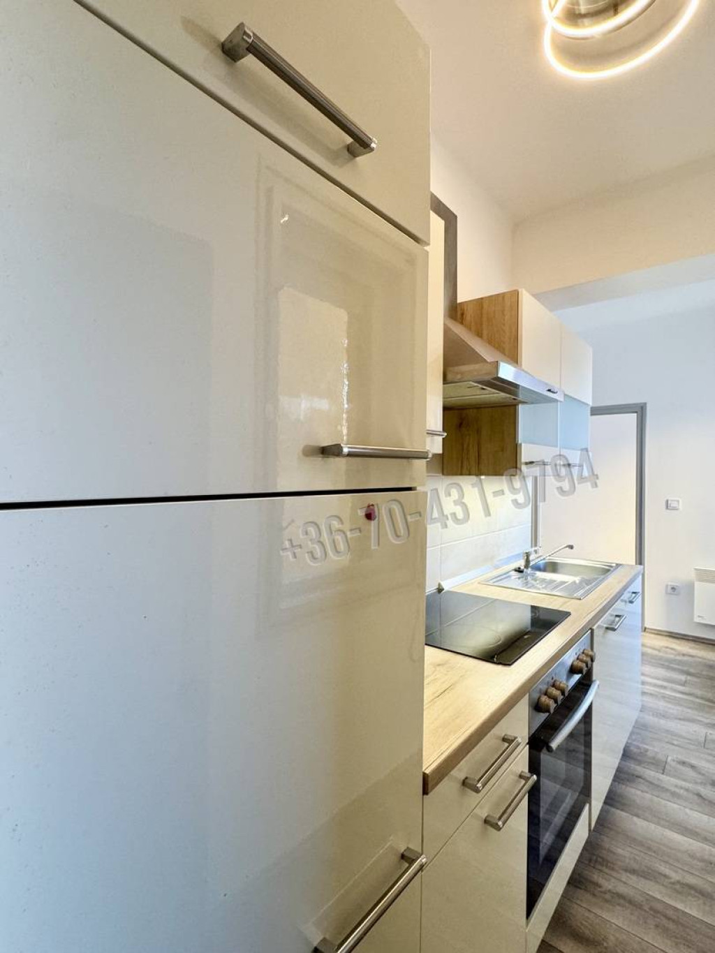 - új, modern, gépesített konyhabútor (sütő, főzőlap, beépített hűtő, beépített mosogatógép),
