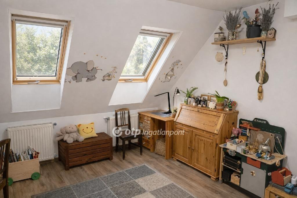 A modern, IKEA konyhabútorral berendezett és teljes körűen gépesített konyha (indukciós főzőlap, sütő, mosogatógép, páraelszívó) ideális választás a mindennapi használatra és vendégfogadásra egyaránt, miközben a hővédő rolók és szúnyoghálók minden tetősík ablakon, valamint a hálószobákban felszerelt sötétítő rolók biztosítják a komfortos lakókörnyezetet.