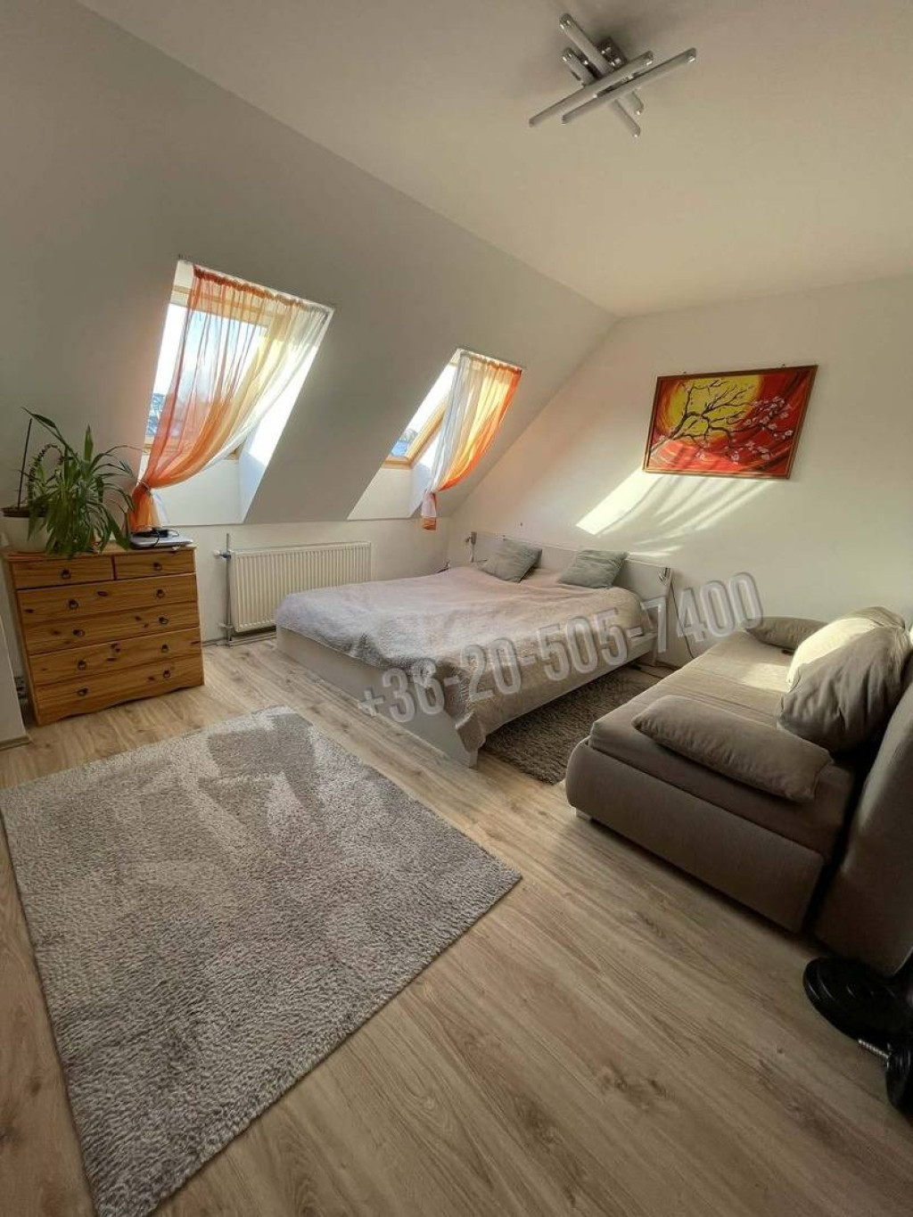 A lakás hőszigetelt műanyag nyílászárókkal, valamint fa tetősík ablakokkal rendelkezik, amelyek külső és belső árnyékolóval felszereltek. A fűtésről melegvíztárolós Bosch gázkazán gondoskodik.