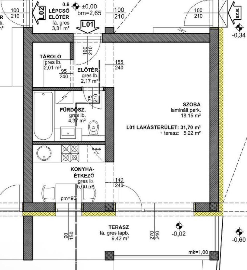 - Teljes gépészeti felszereléssel ellátott beépített konyha.
