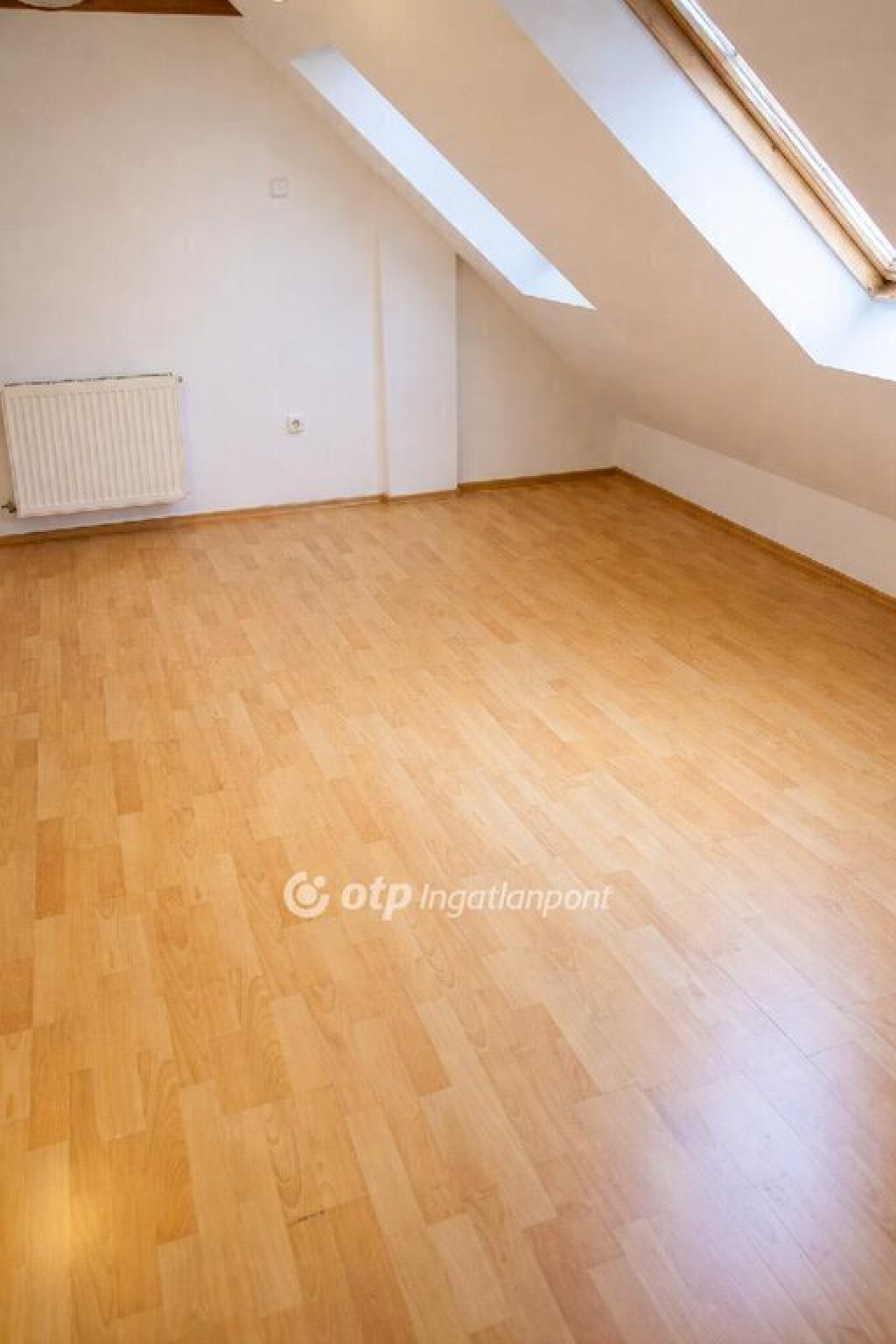 Az ingatlanba belépve egy előszoba?közlekedő?folyosó fogad bennünket, ahonnan elérhető a konyha és az étkező, valamint egy fürdőszoba, amely egy helyiségben kapott helyet a mellékhelyiséggel, továbbá egy tágas, nagyméretű szoba is, amely franciaerkélyes kialakításának köszönhetően kellemes fényviszonyokkal rendelkezik, és amelyből egy kényelmes lépcső vezet fel a tetőtérbe, ahol egy egylégterű, tetőtéri ablakkal ellátott szoba került kialakításra, így a felső szint akár hálószobaként, dolgozószobaként vagy egyéb funkcióra is kiválóan hasznosítható.