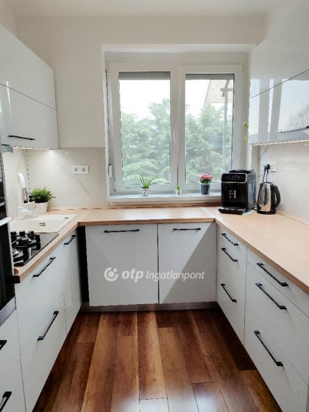 A lakás 3 éve teljeskörű felújításon esett át, beleértve a fűtésrendszert (modern kondenzációs kazán, alsó szinten padlófűtés, fent radiátorok), nyílászárókat, konyhabútort, erkélyt, burkolatokat, és a gardróbot. A vízálló laminált padló és a kerámia járólapok kombinációja elegáns és időtálló megoldás.