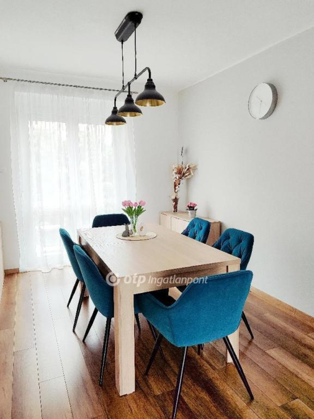A lakás a második emeleten található, egy igényes társasházban, és minden részletében a kényelmet és minőséget képviseli. Az alsó szinten egy hatalmas, világos nappali fogad, hatalmas üvegfelületekkel, amelyek beengedik a természetes fényt és megnyitják a teret. Innen nyílik a napfényes étkező és az erkély ? tökéletes helyszín baráti reggelikhez vagy nyugodt esti borozáshoz. A modern, gépesített konyha nemcsak stílusos, de praktikus is: kamrával és rengeteg tárolóhellyel segíti a mindennapi kényelmet. A szinten található még egy zuhanyzós fürdőszoba WC-vel ? tökéletes a vendégek vagy a nagyobb család számára is.