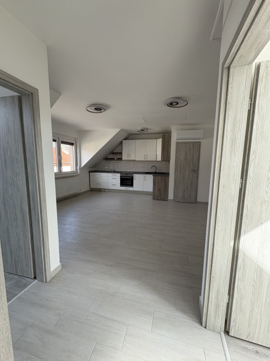 Amerikai konyha beépített konyhabútorral és nappalival, két félszobával, különálló fürdőszobával és WC helységgel.