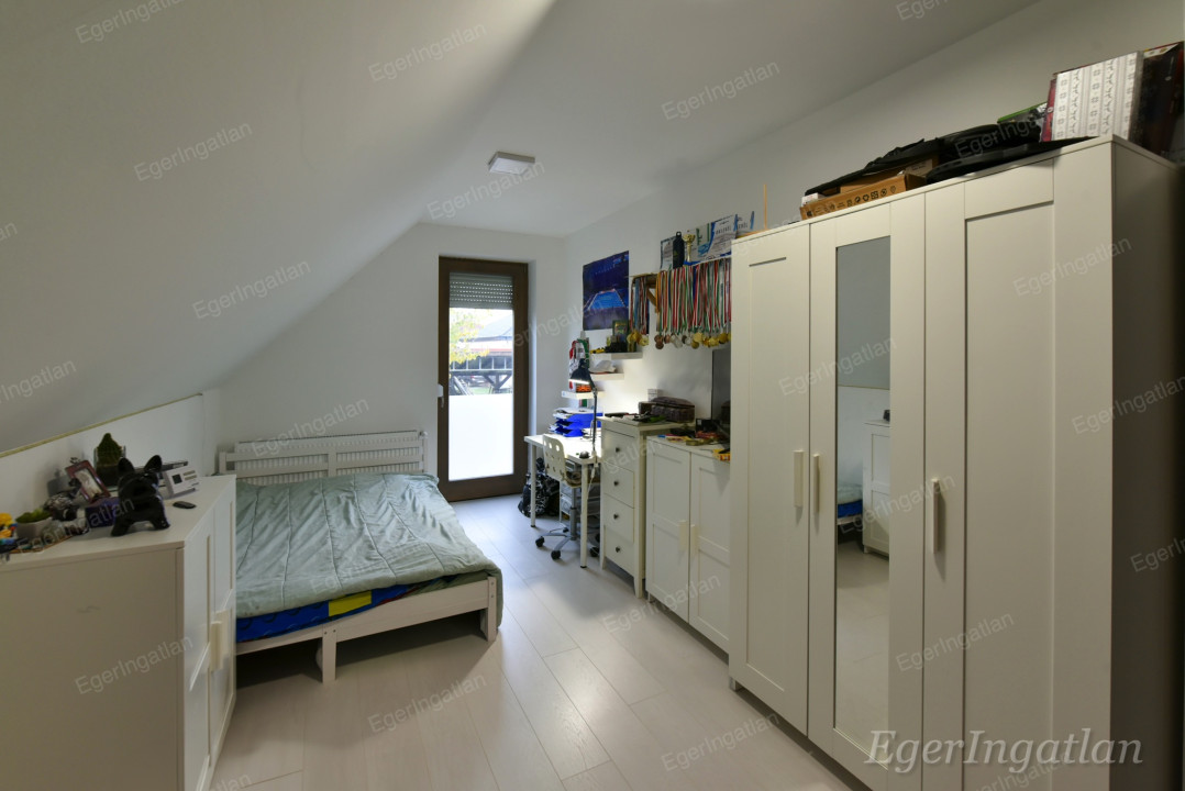 Eladó egy 2022-ben épült, újszerű állapotú, nappali + 3 szobás, gardróbos, kertkapcsolatos, 1. emeleti családi lakás, lenyűgöző örök panorámával és 320 m² kizárólagos telekrésszel.
