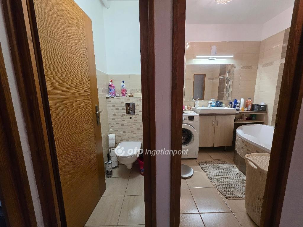 Az alsó és felső szint praktikusan elkülönül, tágas és világos terekkel. A lakás külön fürdőszobával és mellékhelyiséggel rendelkezik, ami a mindennapi kényelmet szolgálja. A gépesített konyha modern és jól felszerelt, a teljes berendezés a vételár részét képezi, így valóban csak be kell költözni.