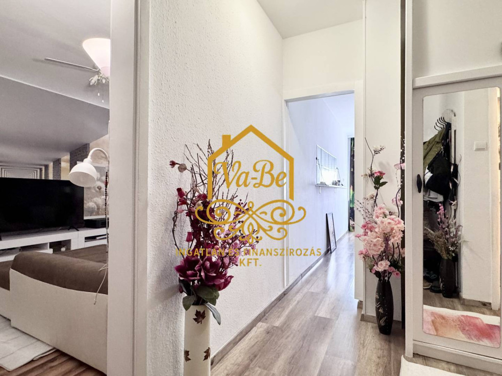 Elosztását tekintve 2 külön nyíló szoba, tágas konyha, kádas fürdőszoba, különálló wc és közlekedő található az ingatlanban.