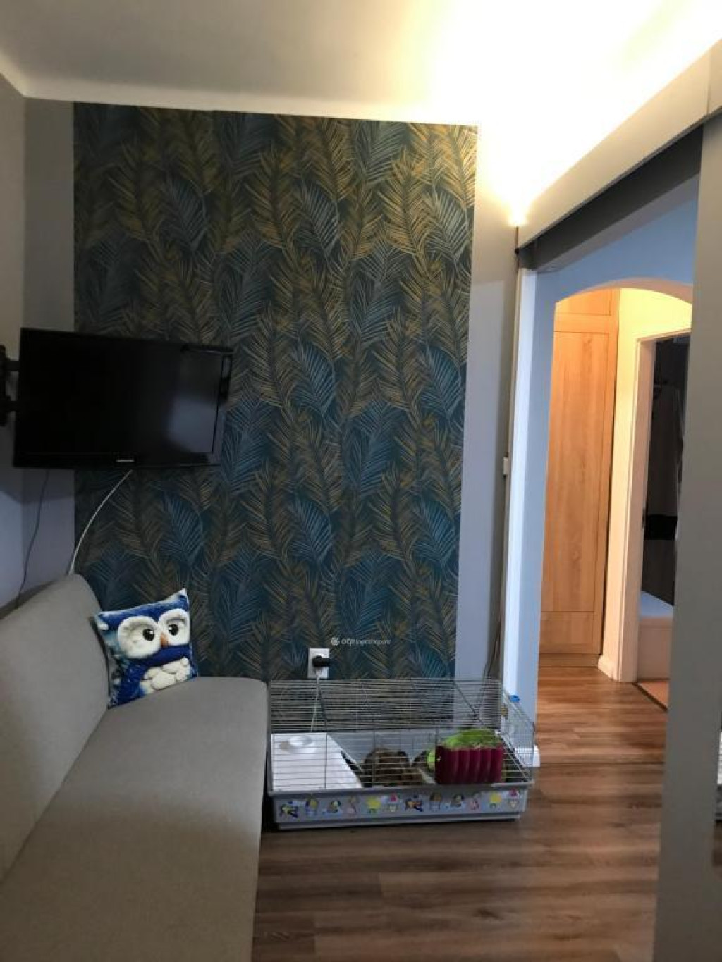Az ingatlan a Mátyás király úton található, egy csúsztatott zsalus 16 lakásos társasház földszintjén helyezkedik el. Nappali, hálószoba, 1 fél szoba, konyha étkezővel, fürdőszoba, külön WC és spájz található benne. A fürdőszoba és WC járólap borításúak, a többi helyiség laminált padlóburkolatú. 8 m2-es erkély és egy 17 m2-es saját tároló tartozik a lakáshoz, valamit egy közös tároló is rendelkezésre áll. Az otthon melegét kondenzációs kazán biztosítja.