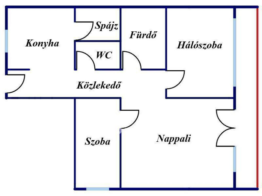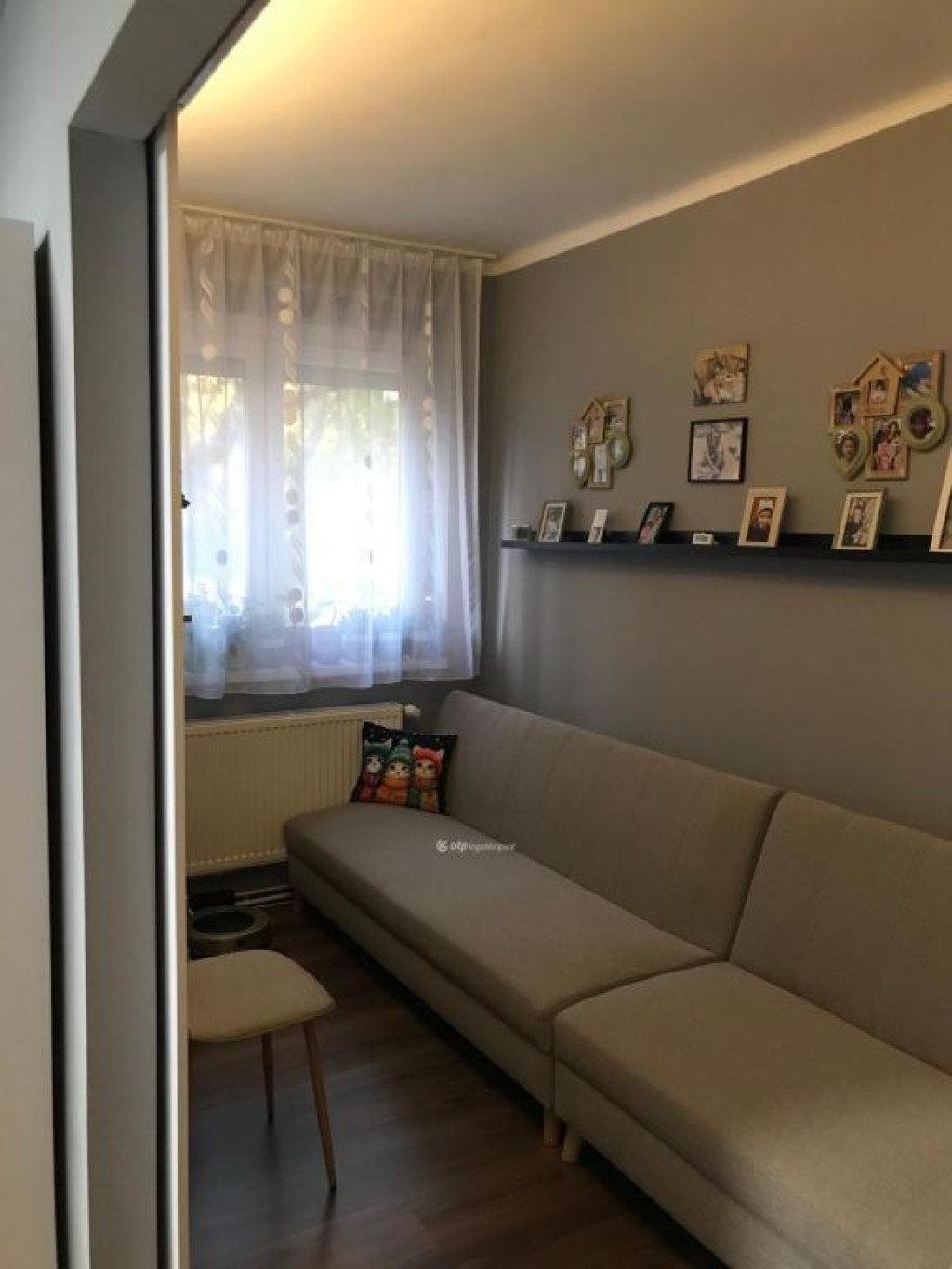Az ingatlan a Mátyás király úton található, egy csúsztatott zsalus 16 lakásos társasház földszintjén helyezkedik el. Nappali, hálószoba, 1 fél szoba, konyha étkezővel, fürdőszoba, külön WC és spájz található benne. A fürdőszoba és WC járólap borításúak, a többi helyiség laminált padlóburkolatú. 8 m2-es erkély és egy 17 m2-es saját tároló tartozik a lakáshoz, valamit egy közös tároló is rendelkezésre áll. Az otthon melegét kondenzációs kazán biztosítja.