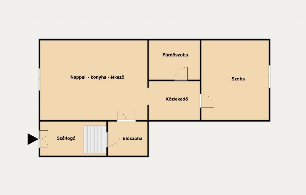 - nappali-konyha-étkező, 1 szoba, zuhanyzós fürdőszoba és wc egyben, előszoba