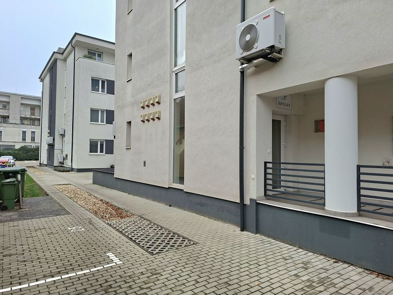 Szerkezeti leírás: A társasház 2020-ban épült beton alapra. Lábazati szigetelés. 30-as hőszigetelő tégla főfalak + 10cm dryvit szigeteléssel. 10-es tégla válaszfalak. Műanyag szerkezetű, 6 légkamrás, 3 rétegű thermoplan üvegezésű külső nyílászárók, bukó-nyíló kivitelben, redőnnyel és szúnyoghálóval ellátva. A belső nyílászárók dekorfóliás ajtók.