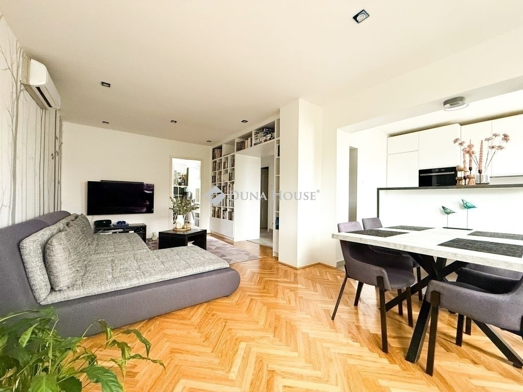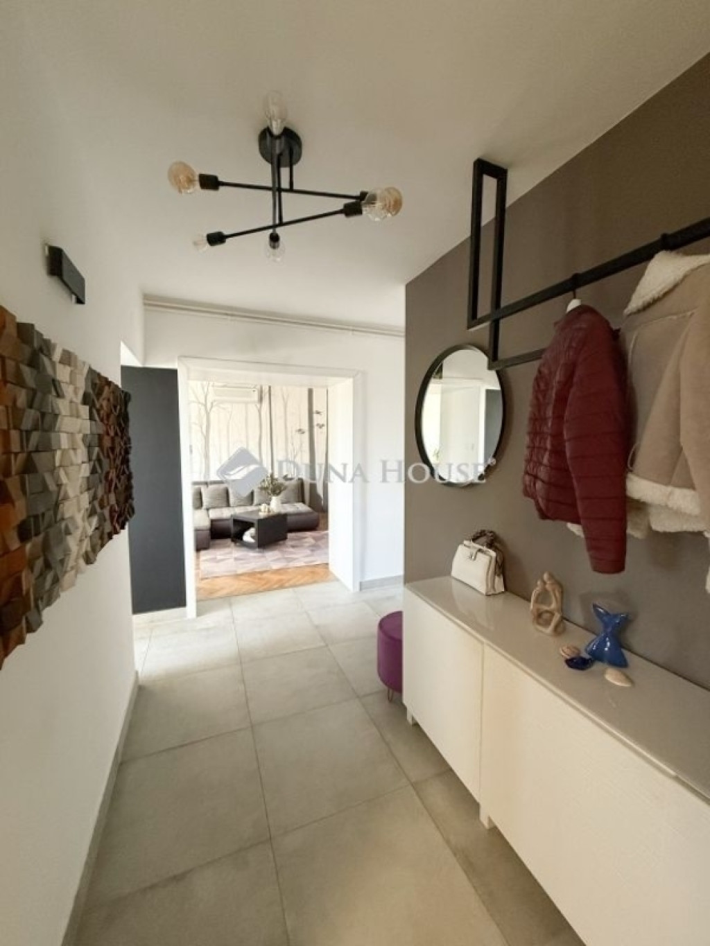 VALÓDI RITKASÁG ÉRDEN!TERASSZAL, KÉTÁLLÁSOS GARÁZZSAL 35nm!Érd Parkvárosban, kisforgalmú utcában, családi házas környéken, eladó egy 4 lakásos társasház első emeletén, teljes körűen felújított teraszos lakás.A lakás 72,9 m2-es nettó alapterületű két hálószobás, amerikai konyhás nappalival lett kialakítva. A nappaliból nyíló 12 m2-es fedett terasz a csendes udvarra néz. A lakáshoz tartozik még egy külön HRSZ számon nyilvántartott 35 m2-es garázs, melyben két autó is kényelmesen elfér és közvetlenül a lépcsőházból is megközelíthető. A terasz és a garázs is a vételár részét képezik.Az épületet egy négy családból álló baráti társaság építtette saját részre, a tarsasházhoz egy közös használatú kert is tartozik.Az eladó lakást a jelenlegi tulajdonosa újíttatta fel saját célra 2020-ban.A praktikus elrendezésű lakásba egy tágas előszobán keresztül léphetünk be a zárt lépcsőházból, ahol már egyből az egész lakásra jellemző, azt egyedivé és otthonossá tevő belsőépítészeti megoldásokkal találkozunk. Az előtérből közvetlenül nyílik a modern fürdőszoba, mely épített zuhanyzóval került kialakításra, a kazán és mosógép szeparáltan lett benne elhelyezésre az intimitását növelve.A lakás szíve, egy több mint 30 nm-es, nappali + étkező + konyha, mely egyedi falfestésével és melegszínű parketta burkolatával teremt egyszerre modern és letisztult, mégis otthonos érzést. A tágas terasszal nyári szezonban ez a tér tovább bővíthető.A két hálószoba alaprajzi elrendezése lehetővé teszi, hogy bármelyik szobában kialakítható a szülői háló, vagy a gyerekszoba, vagy akár vendég- és dolgozószoba. Az előtér közlekedő részéből nyílik továbbá egy 4,5 m2-es gardróbszoba is.A hálószobák észak-keleti tájolásúak, az élettér dél-nyugati fekvésű, térkapcsolataik és nagy ablakaik miatt egész évben világos és napos környezetet biztosítanak.Fűtés-Hűtés:A lakásban kombi-cirkó biztosítja a radiátoros fűtést és használati melegvizet, a kazán és a radiátorok is cserére kerültek a felújításkor. A fürdőszobában is ekkor került kialakításra egy törölközőszárítós radiátor.A hálószobában 2023-ban telepítésre került továbbá egy 2,8 kW-os hűtő-fűtő klímaberendezés, mely az egész lakást egymagában képes lehűteni (2029-ig garanciális a megfelelő karbantartás mellett), emellett a nappaliban található még egy hűtő klímaberendezés is.A lakás rezsije rendkívül kedvező, egész évben havi15.000 Ft. körül mozog. Minden fogyasztás egyedi méréssel ellátott.Bútorzat:A beépített bútorok: gépesített konyhabútor (beépített hűtő, mélyhűtő, Whirlpool 6th sense sütő és mikró, mosogatógép, páraelszívó), nappali könyvespolc, gardróbszekrénysor, fürdőszoba szekrény, továbbá az előtér falán található belsőépítészeti elemek a vételár részét képezik.Épület:A négy lakásos épületnek azon fele, melyben a lakás is található, valamint a lépcsőház 2010- es évben jelentős felújításon esett át, 10 cm-es hőszigetelést kapott a teljes homlokzat, és a tető is plusz hőszigetelést és fölötte új víz-szigetelő réteget kapott. A bejárati ajtó és a lépcsőházi nyílászárók is korszerű többrétegű műanyag típusúra cserélődtek.A lakáshoz tartozó garázs kapuja távirányítóval nyitható, a garázs a lépcsőházból zárható ajtón keresztül is megközelíthető. A pincében található továbbá egy közös használatú tárolóhelyiség, melynek mérete kb. 8 m2 és egy kis ablaka is van, így akár növények teleltetésére is alkalmas. A garázsfeljáró területén további állandó jellegű parkolásra van lehetőség.Ez az Érdi otthon nem csupán egy hely, ahol élünk, hanem egy állomás, ahol megpihenhetünk a mindennapok zajától. Érd egy dinamikusan fejlődő város, ami kiváló infrastruktúrával, jó közlekedéssel Budapesthez közel, mégis elbűvölő természeti környezettel rendelkezik. Itt minden megtalálható, ami a kényelmes és tartalmas élethez szükséges: iskolák, óvodák, bevásárlóközpontok, sportolási lehetőségek és kulturális tevékenységek egyaránt. A város kínálata és a környék nyugodt atmoszférája tökéletes kombinációt alkot azok számára, akik igazán minőségi otthont keresnek.Ez az ingatlan egyedi lehetőséget kínál azok számára, akik egy családi házas környezetben szeretnének élni, de nem szeretnének lemondani a város közelében való lakhatás előnyeiről. Az otthon minden részlete aprólékosan lett megtervezve, hogy a kényelmet és a funkcionalitást előtérbe helyezze. A belső terek kialakításánál a modern igényeket tartották szem előtt, így a felújítás során csak a legjobb minőségű anyagokat használták fel.A lakás napfényes terekkel büszkélkedik, mely egész nap világos, kellemes légkört biztosít otthonának. A teraszról csodálatos kilátás nyílik a gondozott kertre, ahol a család minden tagja megtalálhatja a saját nyugodt kis zugát. A kényelmet növeli a mélygarázs, ahol autóját biztonságban tudhatjaNe hagyja ki ezt a különleges lehetőséget, hívjon még ma, hogy ne maradjon le erről a kiváló ingatlanról.