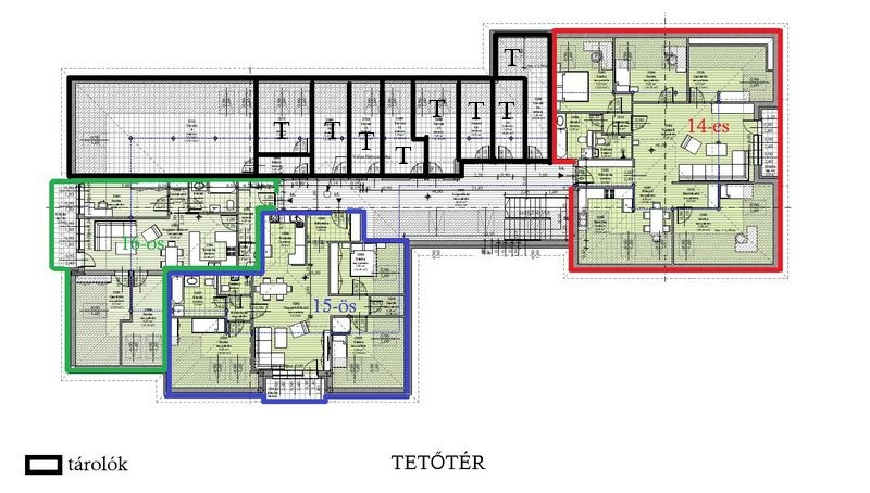 14-es lakás / nappali + 3 szoba + 2 fürdő (nettó 153.7m2, hasznos 101.31m2 + erkély 4.74m2 + tároló + parkoló), Ára: 123.844mFt + a tároló + a parkoló: előszoba (5.23m2), konyha (n° 150.1m2, haszn. 6.45m2) - étkező (n° 10.94m2, haszn. 6.92m2), közlekedő (3.91m2), nappali (33.97m2), közlekedő (2.02m2), 2 fürdőszoba (3.26m2, 6.59m2), gardrób (n° 16.12m2, haszn. 6.45m2), 3 szoba (n° 24.36m2 / haszn. 8.26m2, n° 16.53m2 / haszn. 10.23m2, n° 15.76m2 / haszn. 8.02m2). /Kód: 5124/