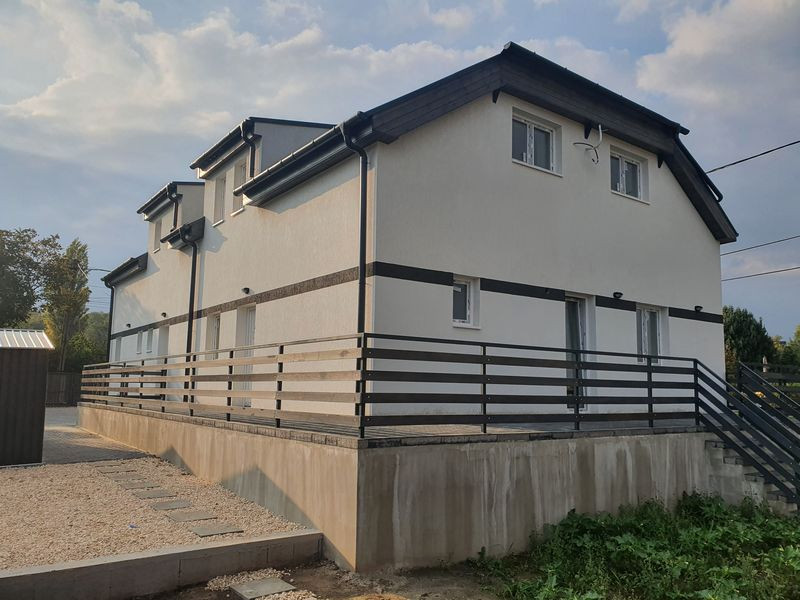 Rövid szerkezeti leírás: Beton alap. 38-as kisméretű tömör tégla és 30-as vázkerámia falazat + 15cm dryvit szigetelés. A külső nyílászárók műanyag szerkezetűek, 3 rétegű hőszigetelt üvegezéssel ellátva. A belső nyílászárók dekorfóliás ajtók. Födém: szarufa között és alatt 25cm szálas hőszigetelés. Cserép fedésű tető.